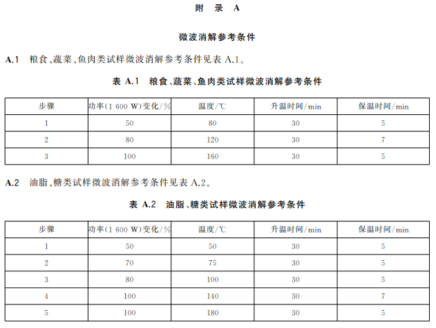 稱取固體試樣0.2g~0.5g(精確到0.001g)、新鮮樣品0.2g~0.8g或液體試樣1mL~3mL于消解罐中,加入5mL~8mL硝酸,加蓋放置過夜,旋緊罐蓋,按照微波消解儀的標痄操作步驟進行消解(消解參考條件見附錄A表A.1)。冷卻后取出,緩慢打開罐蓋排氣,用少量水沖洗內蓋,將消解罐放在控溫電熱板上或超聲水浴箱中,于80℃加熱或超聲脫氣2min~5min,趕去棕色氣體,取出消解內罐將消化液轉移至25mL塑料容量瓶中,用少量水分3次洗滌內罐,洗滌液合并于容量瓶中并定容至刻度,混勻備用;同時作空白試驗。