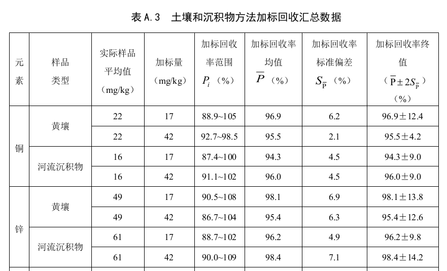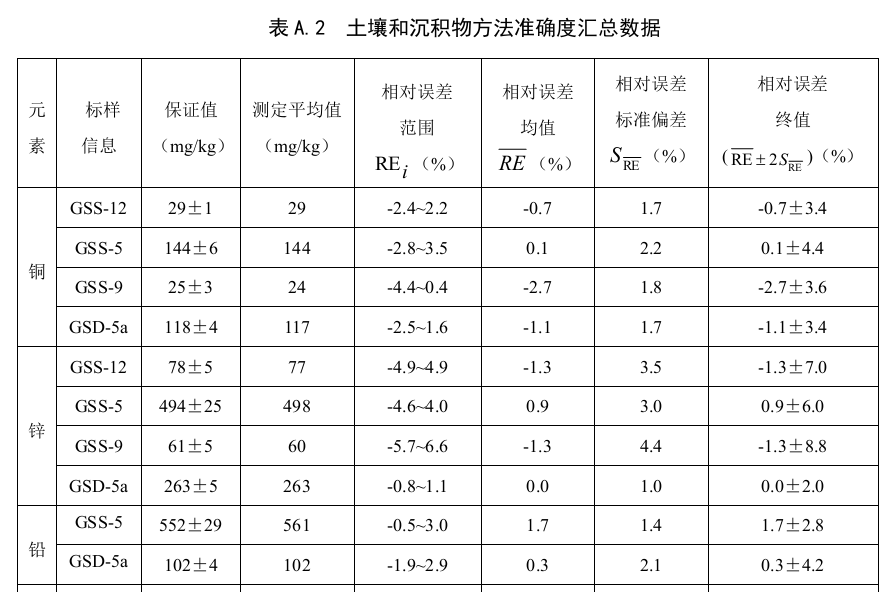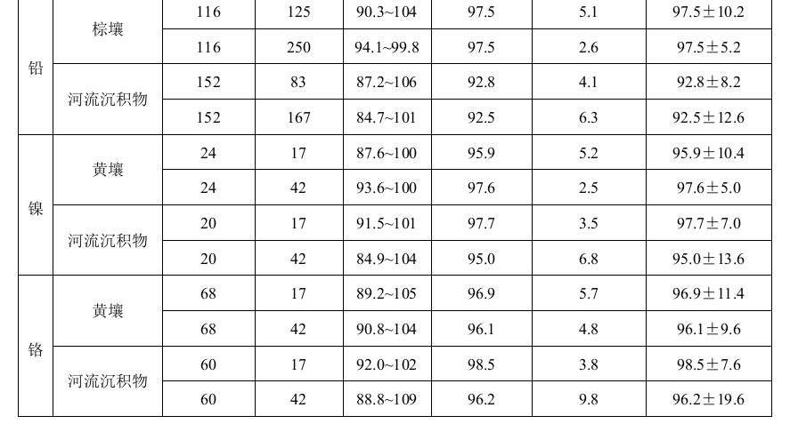 本標(biāo)準(zhǔn)適用于土壤和沉積物中銅、鋅、鉛、鎳和鉻的測定。當(dāng)取樣量為0.2g、消解后定容體積為25 ml時(shí),銅、鋅、鉛、鎳和鉻的方法檢出限分別為1 mg/kg、1 mg/kg、10 mg/kg、3 mg/kg和4 mg/kg,測定下限分別為4 mg/kg、4 mg/kg、 40 mg/kg、12 mg/kg和16 mg/kg。