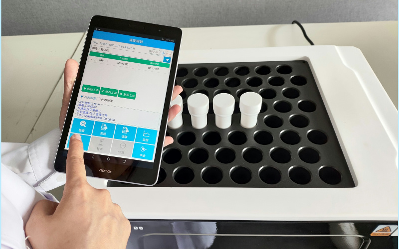智能石墨消解儀采用平板藍牙控制技術,實現了設備的遠程操控與實時溫度監測功能。實驗人員無需在實驗區域持續值守,在辦公區域即可完成消解程序的設定、啟動與進程監控,有效減少了與實驗過程中產生的有害氣體及高溫環境的直接接觸,為實驗人員的職業健康提供了更有力的保障,讓整個消解操作過程更具安全性與便捷性。