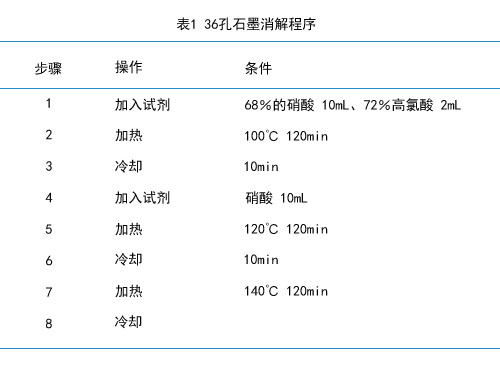 試劑:鎳、鉛單標(biāo)準(zhǔn)儲(chǔ)備液:500mg/L,使用時(shí)稀釋成適當(dāng)濃度的標(biāo)準(zhǔn)溶液,國(guó)家標(biāo)準(zhǔn)物質(zhì)研究中心;HNO:優(yōu)級(jí)純;雙氧水、高氯酸、磷酸二氫銨:分析純;去離子水。