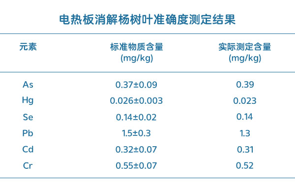 加熱板消解楊樹葉準確性測定結果