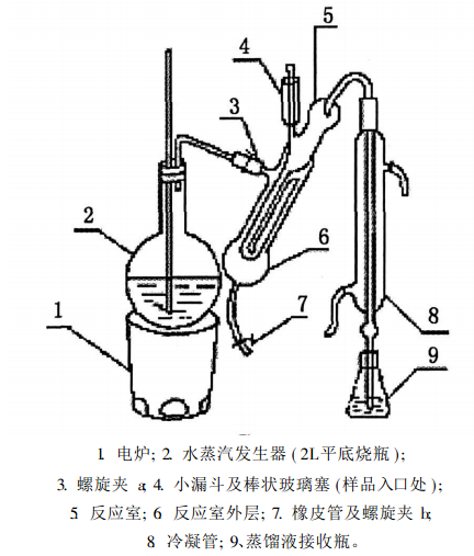 在凱氏定氮器中與堿作用,通過蒸餾釋放出NH3,收集于H3BO3溶液中,反應式為:(NH4)2SO4+2NaOH=2NH3+2H2O+Na2SO4 2NH3+4H3BO3=(NH4)2B4O7+5H2O